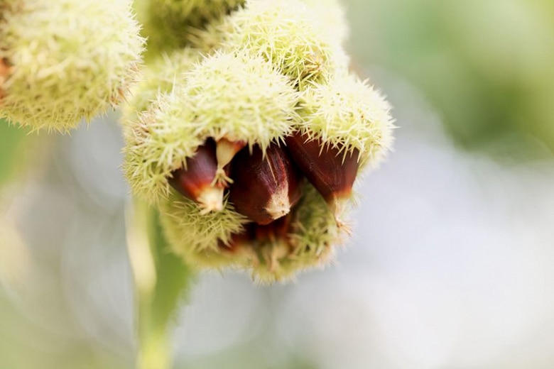 Castanea pumila, commonly known as the Allegheny chinquapin, American chinquapin (Powhatan) or dwarf chestnut, is a species of chestnut native to the southeastern United States. It is a spreading shrub or small tree, reaching 2–8 m (6 ft 7 in–26 ft 3 in) in height at maturity. The nut can be roasted much like the chestnut, and eaten whole as a snack. … Native Americans recognized the importance of chinquapin nuts, incorporating them into their seasonal food diet.
